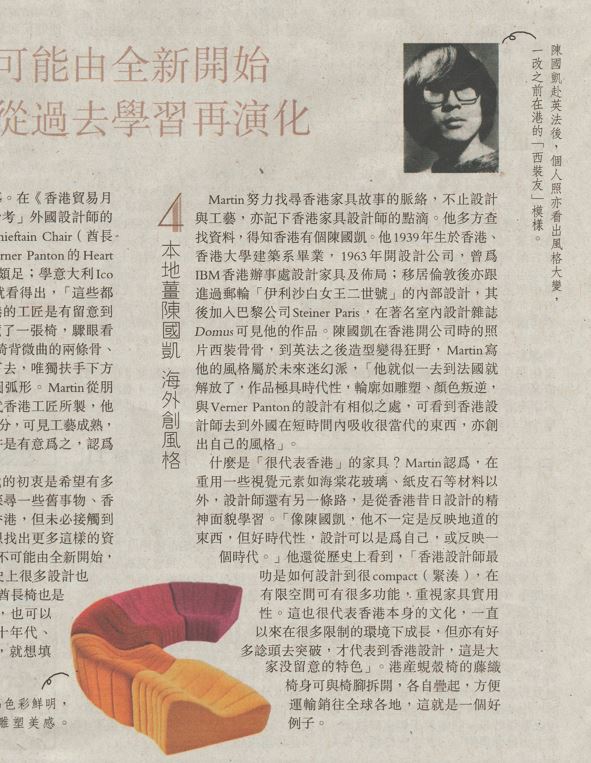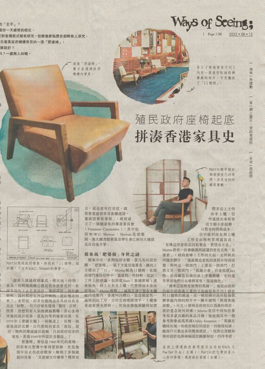 「很多人談論政府家具、殖民地(時期)家具,坊間說高級公務員宿舍就會見到,有沒有深究下去是誰設計、幾時設計、用什麼物料、為何那時要用這些物料、設計概念何來?」老實說,記者也聽聞過港英政府舊家具是「好嘢」,但只停留在覺得「靚呀、正呀」便算,沒想到有人如他讀遍舊報,苦心去尋背後的設計故事……